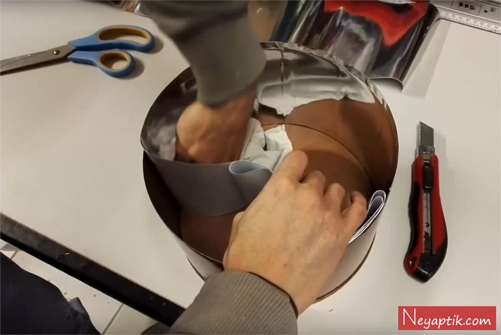 Herhangi bir eski metal kovadan yapabilirsiniz. Örneğin metal boya kutuları olabilir.