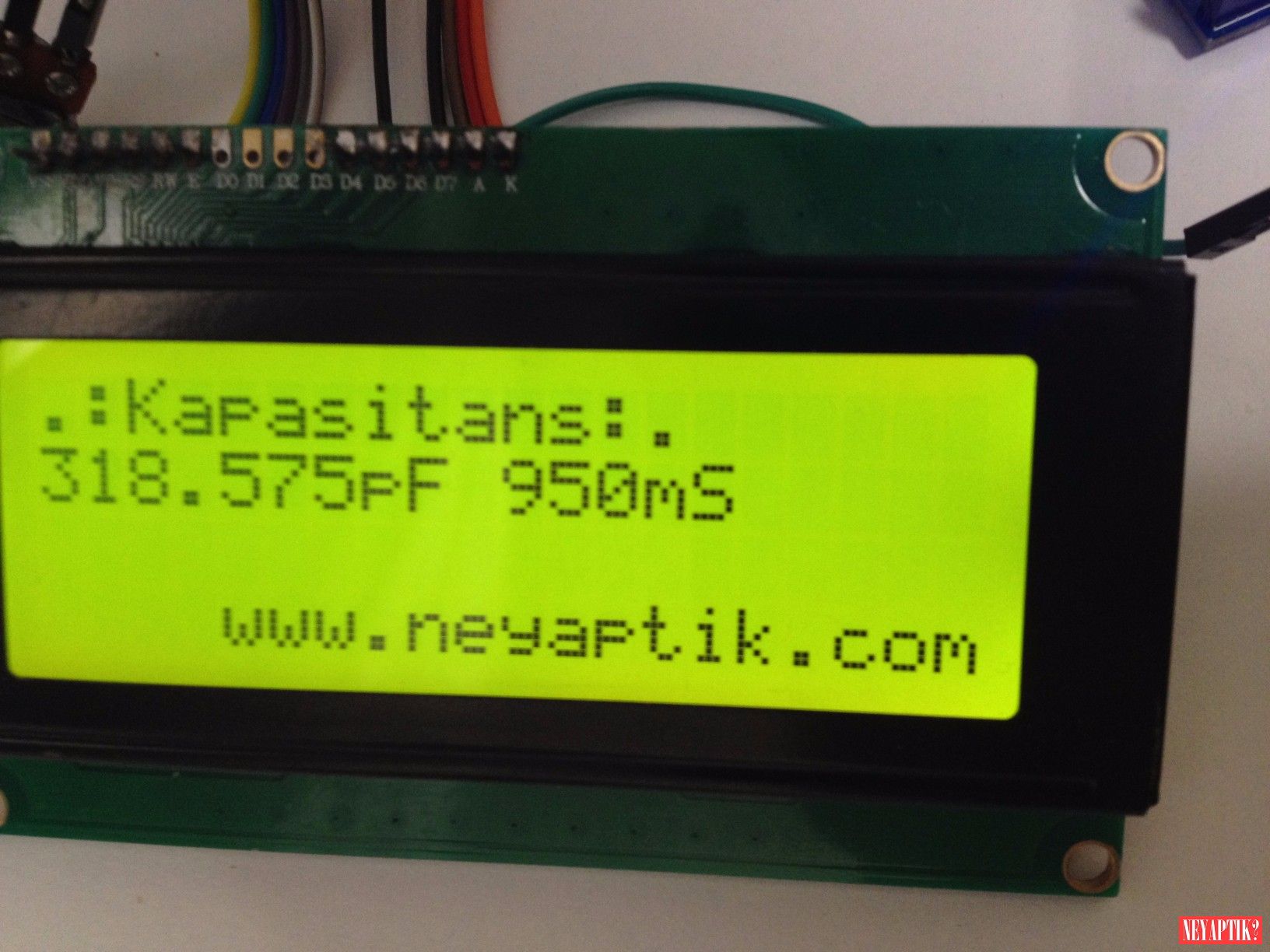 #includeLiquidCrystal lcd(12, 11, 5, 4, 3, 2); //istediğiniz gibi ayarlayabilirsiniz. const int OUT_PIN = A2; const int IN_PIN = A0; const float IN_STRAY_CAP_TO_GND = 24.48; const float IN_CAP_TO_GND = IN_STRAY_CAP_TO_GND; const float R_PULLUP = 34.8; const int MAX_ADC_VALUE = 1023; void setup() { pinMode(OUT_PIN, OUTPUT); pinMode(IN_PIN, OUTPUT); lcd.begin(20, 4); //16x2 lcd için 16, 2 yapın burayı lcd.setCursor(0,0); lcd.print(F(".:Kapasitans:.")); } void loop() { pinMode(IN_PIN, INPUT); digitalWrite(OUT_PIN, HIGH); int val = analogRead(IN_PIN); digitalWrite(OUT_PIN, LOW); if (val < 1000) { pinMode(IN_PIN, OUTPUT); float capacitance = (float)val * IN_CAP_TO_GND / (float)(MAX_ADC_VALUE - val); lcd.setCursor(0,1); lcd.print(capacitance, 3); lcd.print(F("pF ")); lcd.print(val); lcd.print("mS"); } else { pinMode(IN_PIN, OUTPUT); delay(1); pinMode(OUT_PIN, INPUT_PULLUP); unsigned long u1 = micros(); unsigned long t; int digVal; do { digVal = digitalRead(OUT_PIN); unsigned long u2 = micros(); t = u2 > u1 ? u2 - u1 : u1 - u2; } while ((digVal < 1) && (t < 400000L)); pinMode(OUT_PIN, INPUT); val = analogRead(OUT_PIN); digitalWrite(IN_PIN, HIGH); int dischargeTime = (int)(t / 1000L) * 5; delay(dischargeTime); pinMode(OUT_PIN, OUTPUT); digitalWrite(OUT_PIN, LOW); digitalWrite(IN_PIN, LOW); float capacitance = -(float)t / R_PULLUP/ log(1.0 - (float)val / (float)MAX_ADC_VALUE); lcd.setCursor(0,0); lcd.print(F("Capacitance = ")); if (capacitance > 1000.0) { lcd.setCursor(0,1); lcd.print(capacitance / 1000.0, 2); lcd.print(F("uF ")); lcd.print(val); lcd.print("mS"); } else { lcd.setCursor(0,1); lcd.print(capacitance, 2); lcd.print(F("nF ")); lcd.print(val); lcd.print("mS"); } } while (millis() % 1000 != 0); }